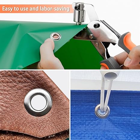 Crafted with a non-slip, anti-rust handle, this grommet tool offers maximum control and safety. The spring-loaded mechanism ensures a smooth punching motion while protecting your hands from strain. Perfect for professionals and hobbyists alike.