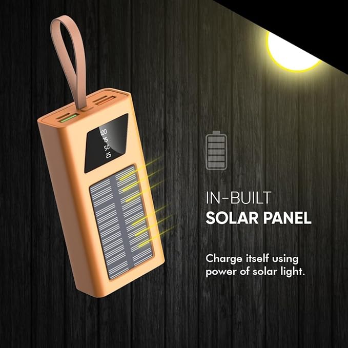 Crafted with a rugged exterior and shockproof design, this solar power bank is built to withstand outdoor use. It’s water-resistant and dustproof, making it perfect for camping, trekking, and road trips. Lightweight and compact, it easily fits into any backpack or carry-on.