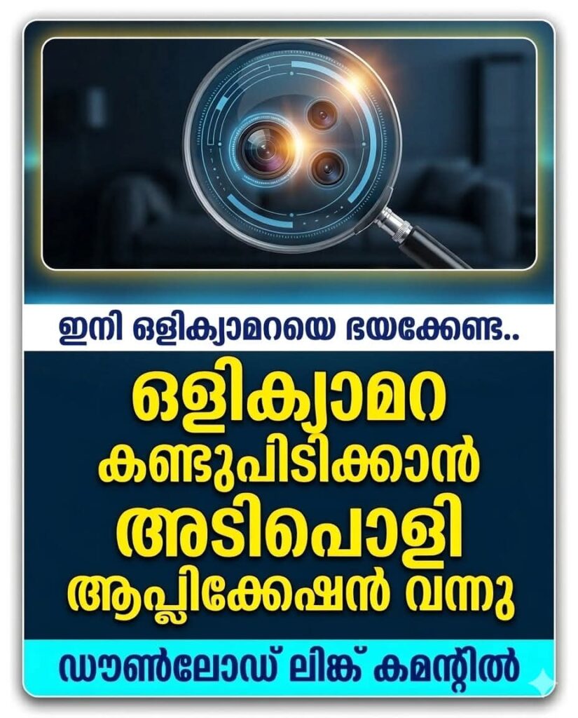 The app helps locate hidden camera lenses by detecting light reflections. Simply move your phone around the room, and it will highlight suspicious reflective points.