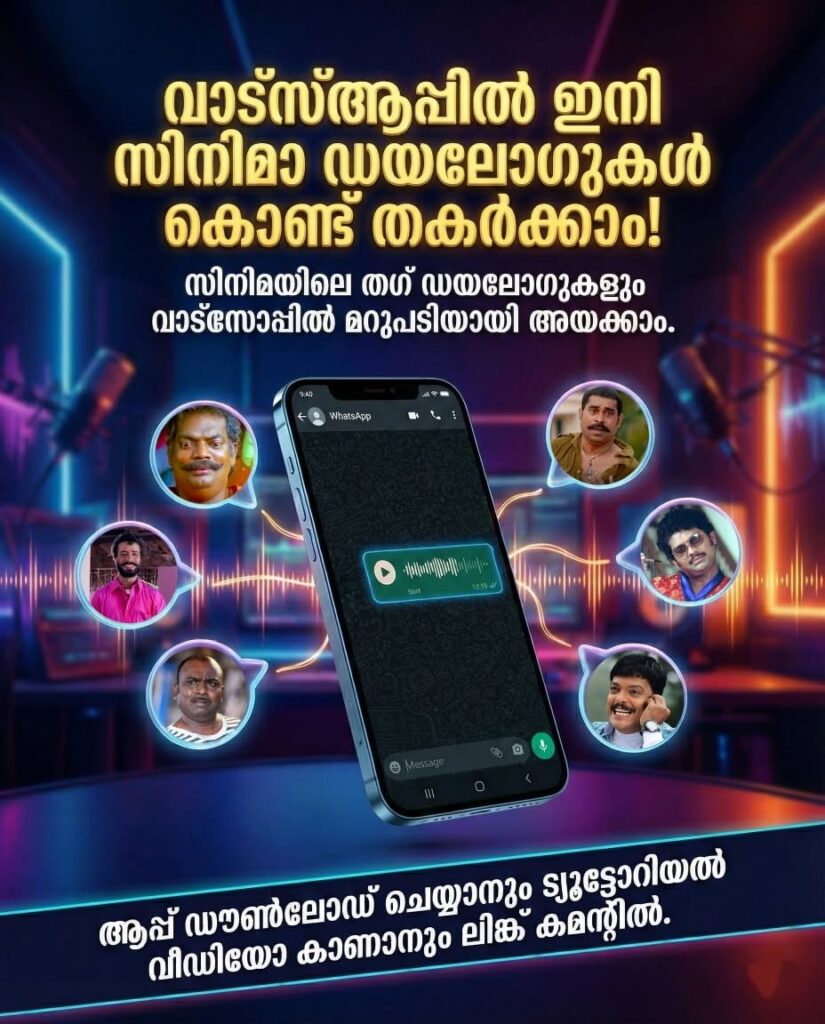 Relive iconic moments from popular Malayalam movies with crystal-clear dialogue audios. Whether you’re a fan of classic cinema or new-age blockbusters, the app lets you explore and save legendary lines instantly.
